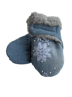 Upcycled Baby Mittens - XS (6-18 Mos.) | Hook & Loop | Upcycled | Denim Flower