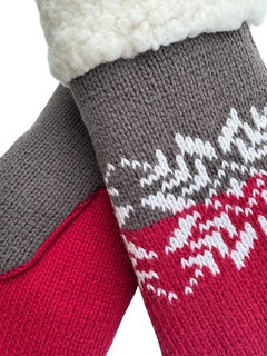 Upcycled Kids Mittens - Large (7 yrs. & up) | Burgandy Print Knit