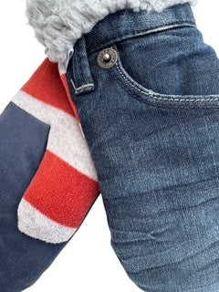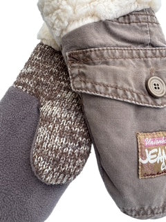 Upcycled Kids Mittens - Large (7 yrs. & up) | Denim & Sparkly Gray