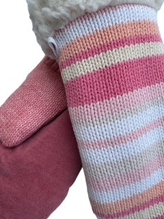Upcycled Kids Mittens - Large (7 yrs. & up) | Rose Stripe